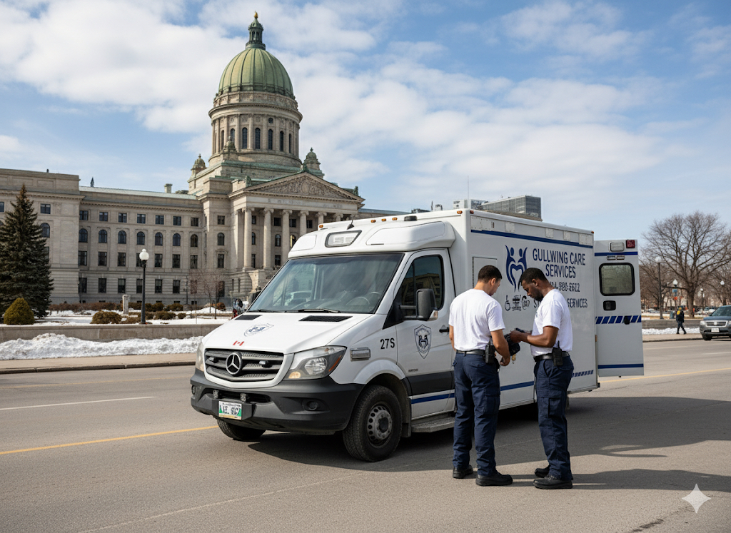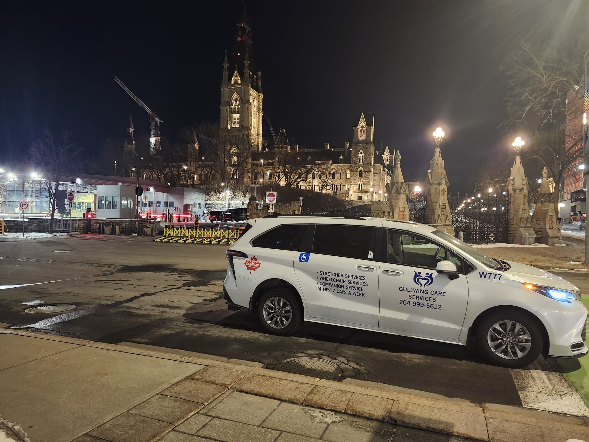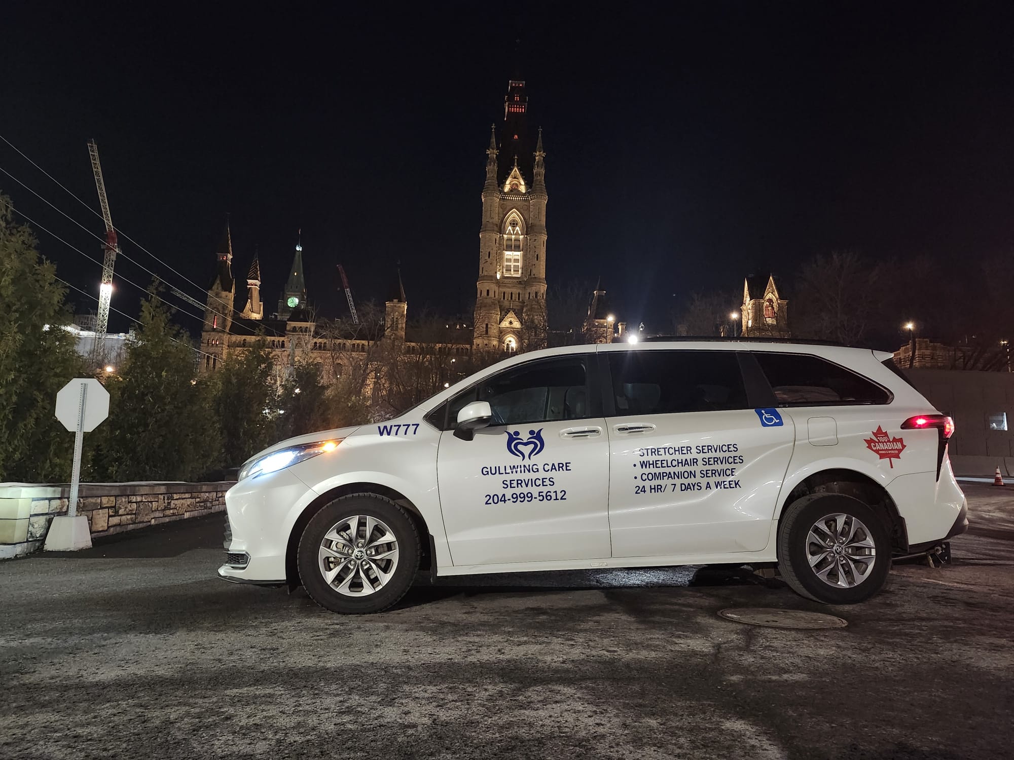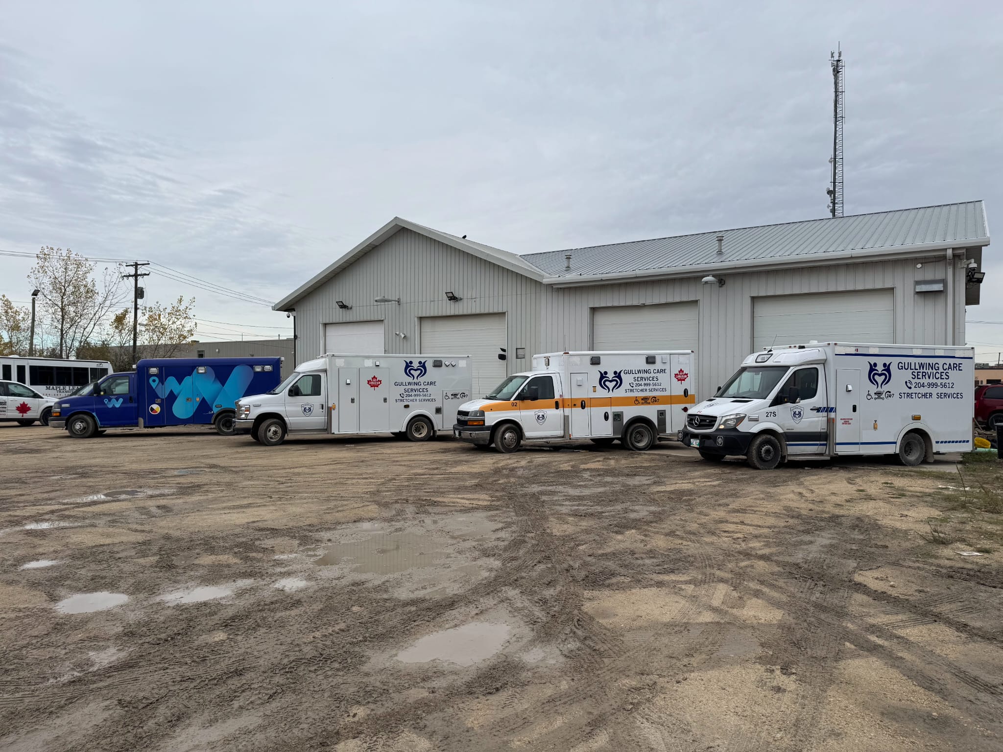 A view of Gullwing Care Services team members, equipment and vehicles, at work.